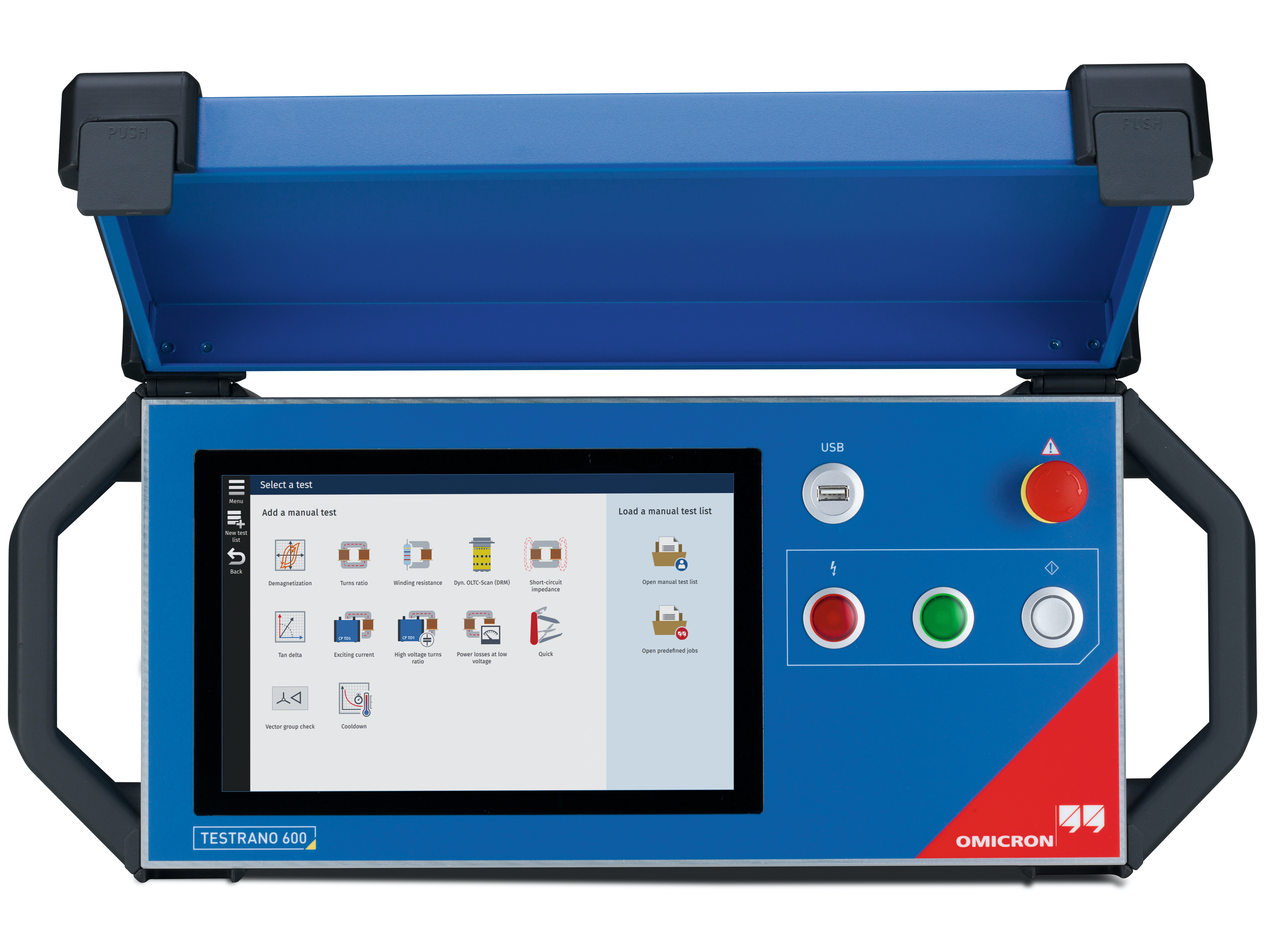 Na skúšky výkonových transformátorov si môžete buď vybrať špeciálne zariadenie, ktoré je schopné realizovať 3-fázové skúšky a ušetriť vám čas na skúšky minimálnou potrebou zmeny zapojenia skúšobných káblov na transformátor. Môžete urobiť gro kľúčových škúšok pri jednom zapojení s jedným zariadením - priamo na jeho farebnom displeji - napr. meranie budiaceho prúdu, prevodu, hodinového uhlu, odporu vinutia meranie strát pri nízkom napätí ako aj meranie dynamického odporu odbočiek (DRM).